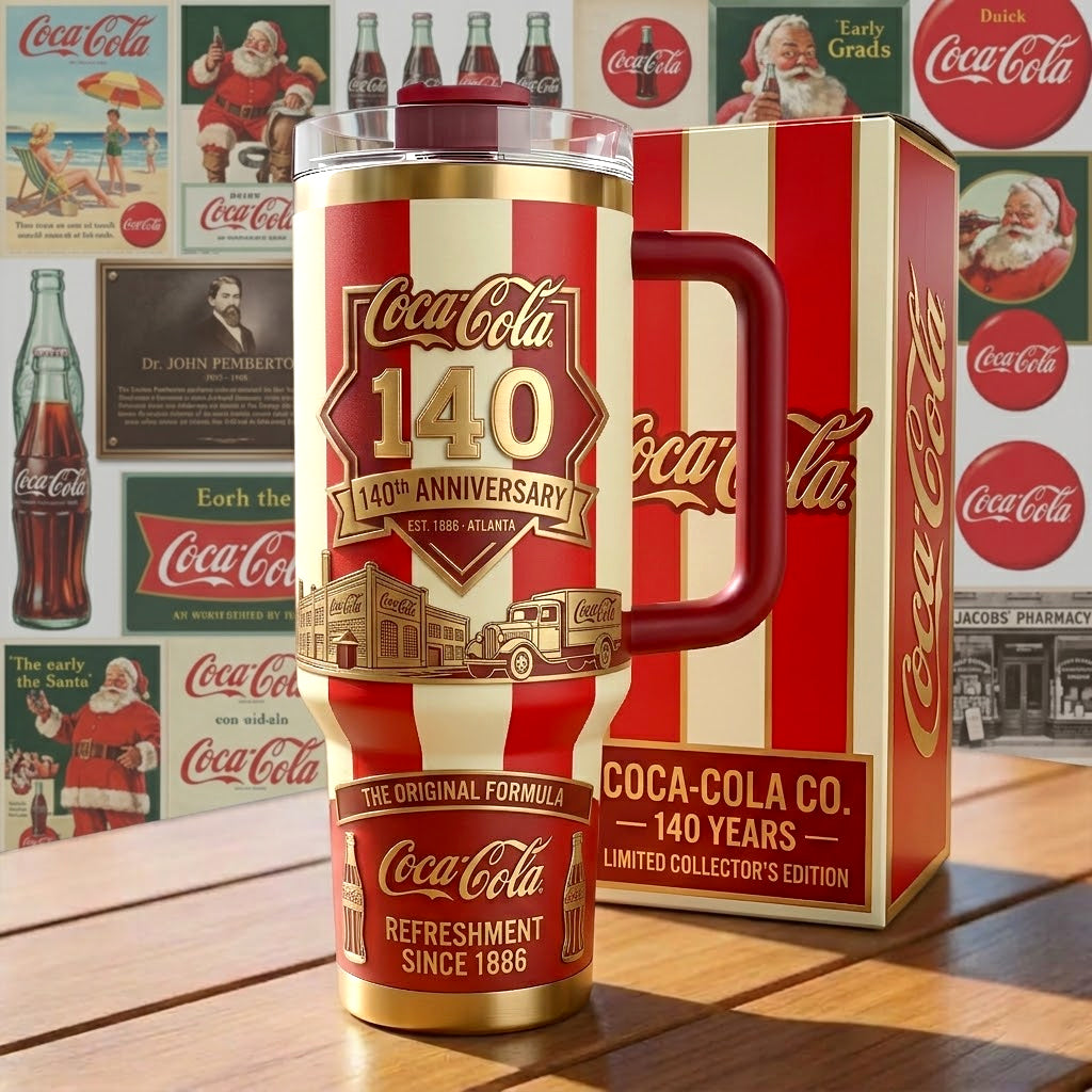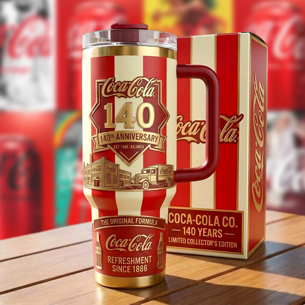 Coca Cola 140TH Anniversary Custom Stanley Cup 40 oz 30 oz Tumbler With Handle