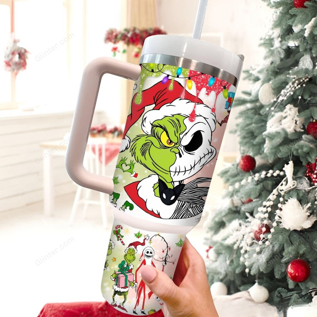 Jack Skellington x The Grinch Christmas Custom Stanley Cup 40 oz 30 oz Tumbler With Handle